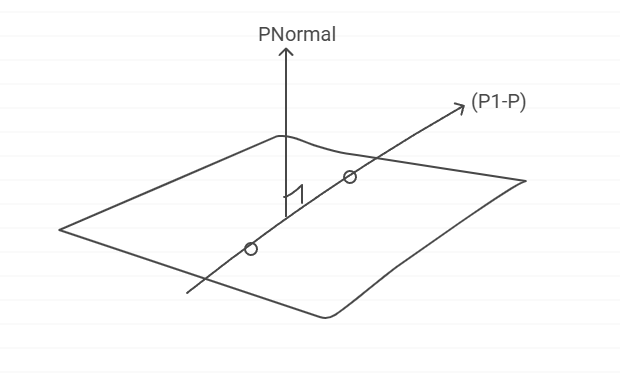 T = (PNormal • (P1 - CameraPosition)) / PNormal • CameraVec 가 됩니다.